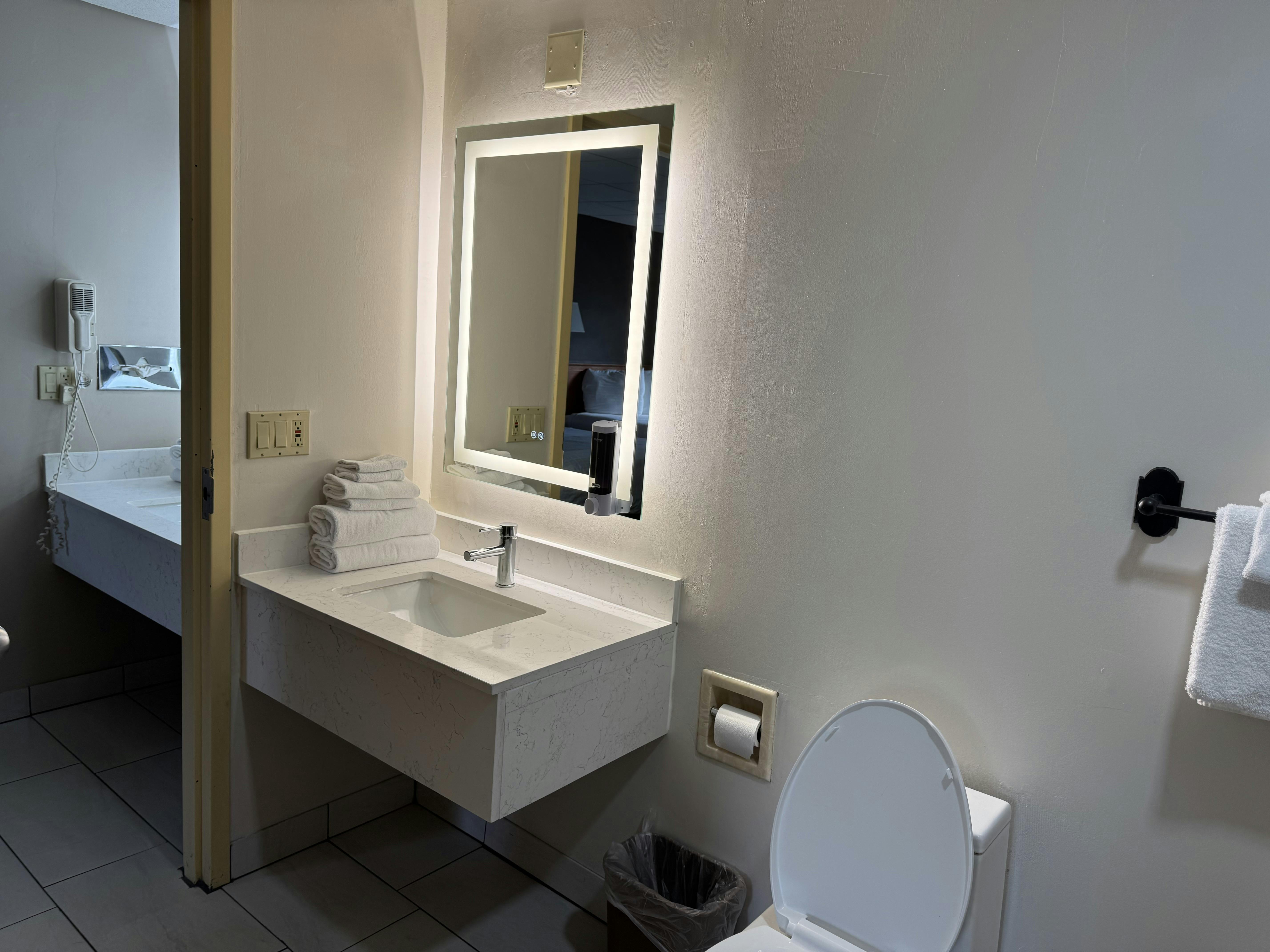 Click here for a video tour. Enjoy the flexibility and comfort of our spacious Two-Room Poolside Family Suite. Perfect for families, this suite features two comfortable full-size beds in the separate bedroom and a convenient pull-out sofa in the living area, easily accommodating up to 6 guests.
